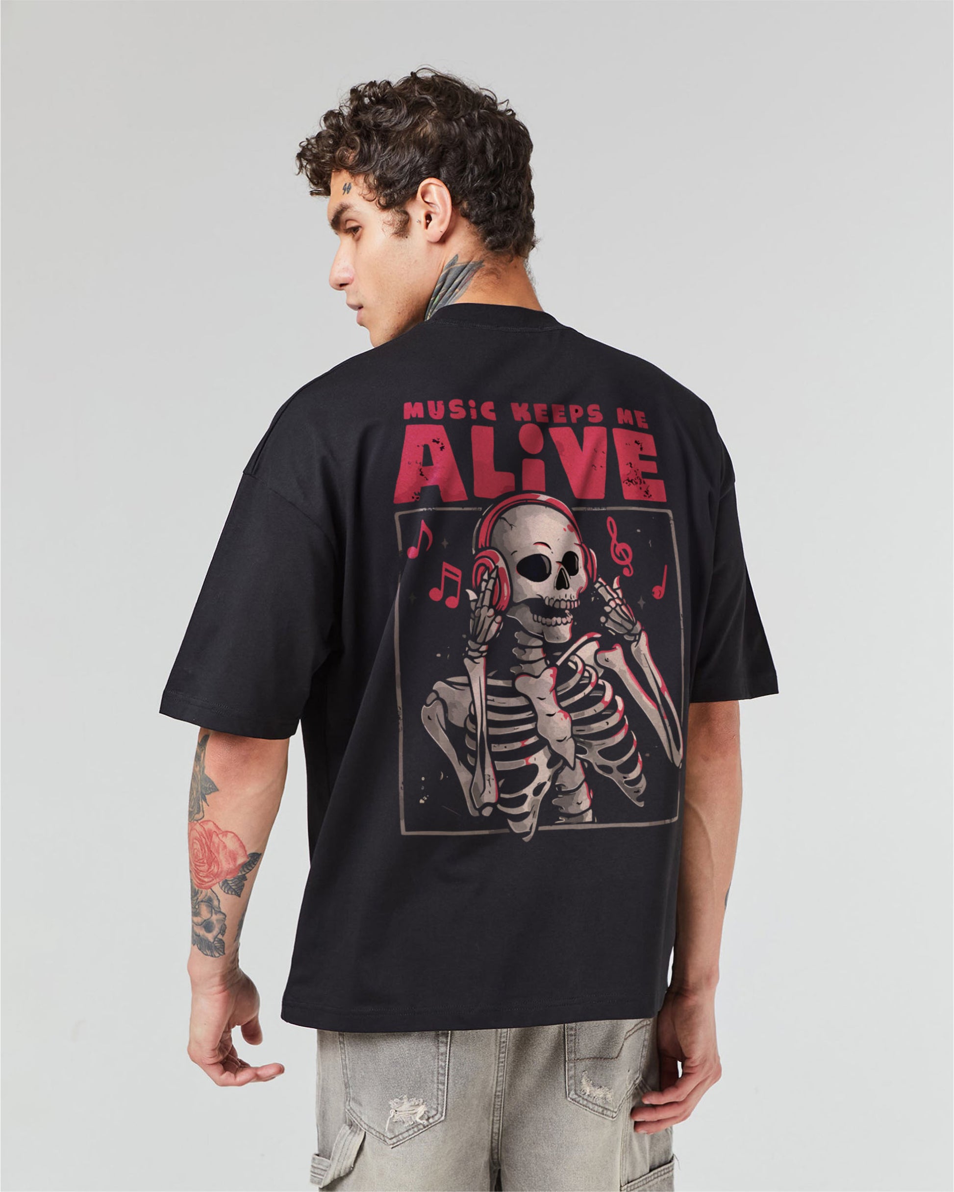 Channel your inner rebel with our bold Music Lover Tee! Made with soft French terry cotton and featuring a skeleton illustration and dark theme, this tee is perfect for those who live life on the edge. Let the quote "Music makes me alive" inspire you to take risks and live life to the fullest! Grab yours now!