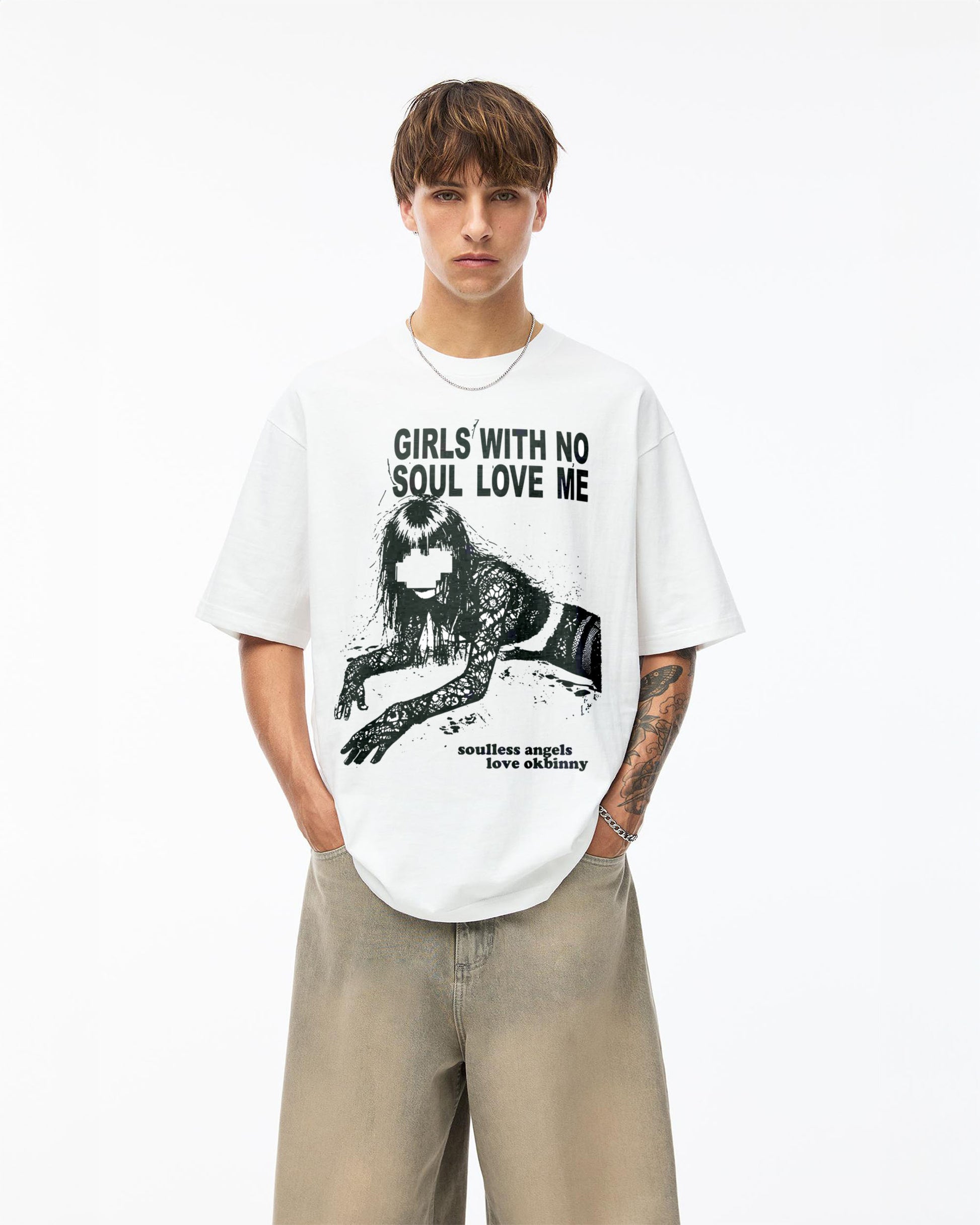 The Soulless Angels Tee is made of luxurious french terry cotton for a soft feel. Its dark theme and bold quote, "girl with no soul love me", make it a must-have for those who love a little edge in their style.